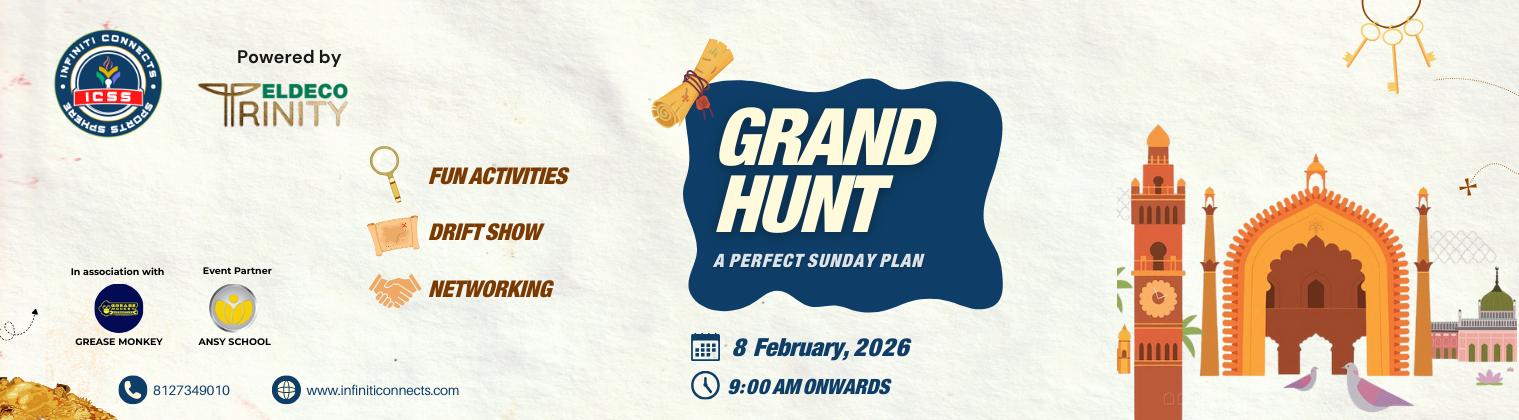 An exciting trail of adventure awaits. The Grand Hunt is a unique experience featuring premium cars and powerful bikes coming together for a high-octane challenge. Explore, compete, and celebrate the spirit of the road with fellow auto and bike enthusiasts. Not just a ride—this is an experience.